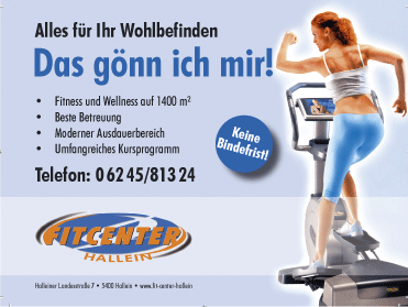 | Fit Center-Hallein Manfred Petautschnig Oberalm, Hühnerauweg 8a, Tel. 06245/ 81324 |