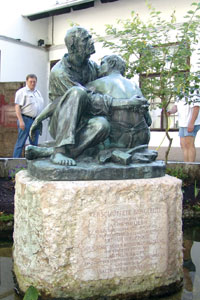 Jakob Gruber schuf das tonnenschwere Kunstwerk in jungen Künstlerjahren im Jahr 1895. In der Jahresausstellung seiner Wiener Künstlergruppe erhielt für sein Werk, die lebensgroße Bronzegruppe „Verschüttete Bergknappen“, den Reichl-Preis und den Rompreis. Gruber wurde 1854 als Sohn eines Bergmannes in Hallein geboren. Von daher kommt die große Vertrautheit mit dem Leben und Sterben der Bergleute. Ursprünglich war der Künstler Holzschnitzer, später Ornamentiker. Nach dem Militärdienst ging er nach Wien zu Professor König, der ihm auch das 3-jährige Studium an der Kunstgewerbeschule verschaffte. Schon nach einem Jahr galt er als bester Schüler. Daraufhin holte ihn Professor Zambusch für sechs Jahre, wo er im „Concurrenzwege“ drei Mal die 1000 Kronen der Fröhlich-Stiftung erhielt. Mit einem den „Verschütteten Bergknappen“ ebenbürtigen Werk, „Kämpfende Schiffbrüchige“, gewann er 1895 den Hofpreis „Zweiter Classe“, das auf Ausstellungen in Wien, Berlin und München zu sehen war. In Rom, Florenz und Neapel schuf er Portraitmedaillons von bedeutenden Zeitgenossen: Botschafter, Gesandte, Attachés. Auch die Überlebensgroße für das Grab vom Salzburger Bezirkshauptmann Dr. Weber und viele andere Zeitgenossen. Für die Wienerberger Ziegelfabrik schuf er so anmutige Motive wie eine lebensgroße Terracottagruppe. |