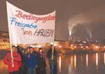 Retten wir unsere Papierfabrik, lautete der Aufruf für einen Solidaritätsmarsch am 17. Dezember. Tausende Menschen aus dem ganzen Bezirk folgten dem Ruf und stellten sich hinter die 700 Mitarbeiter.