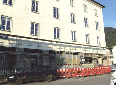 Rechtsfrage: Vollwäremschutz auf städtischem Grund? Inzwischen war das Bauvorhaben baurechtlich bewilligt, ebenso die Genehmigung zur Errichtung der Baustelle inklusive Baugerüst erteilt. Nur, Springer wollte keine Vereinbarung mit der Stadt über Kauf oder Pacht der benötigten Grundfläche um das Haus abschließen. Als die Liefer-LKWs vergangene Woche anrückten, rückte jedoch auch die Halleiner Stadtpolizei aus und sollte die Baustelle einstellen, da sich Markus Springer nicht auf die Angebote der Gemeinde für die benötigte Grundfläche um das Haus einigen wollte. Für den Immobilienmakler stellte sich die Sache nämlich völlig anders dar. Das Haus an der Halleiner Kuffergasse 1 gehört inzwischen mehrheitlich ihm und seiner Gattin. Die auf der Salzachseite befindliche Passage sei im Eigentum der Republik Österreich. Der frühere Errichter des Hauses habe mit der Republik einen Pachtvertrag abgeschlossen; Familie Vogl durfte die Säulen für die Passage und den Überbau errichten, das Hausvolumen damit erweitern. Die Stadt Hallein wollte ihrerseits bereits vor Jahren diesen Vertrag aufgelöst haben. Etwa durch eine Schenkung zugesprochen bekommen, und damit Herr über die Passage werden. Das hätte jedoch nichts am Grundsätzlichen geändert, sagt Springer. Denn in diesem Fall müsste das bestehende Vertragsrecht mit dem Bund durch einen Dienstbarkeitsvertrag mit gleichen Rechten ersetzt werden. Inzwischen habe sich die Sache jedoch wieder beruhigt. Nach stundenlangen Verhandlungen mit dem Leiter der städtischen Rechtsabteilung, Mag. Oliver Längauer, wurden die „Knackpunkte“ zu einer Lösung der Fragen gefunden, heißt es von beiden Seiten. Auf was Springer darüber hinaus Wert legt: Die illegalen Überspannungen für Transparente von seinem Haus nach gegenüber müssen geregelt werden. Nur noch für stadtbezogene Feste sollen sie bewilligt werden, nichts anderes, ist seine Forderung. |